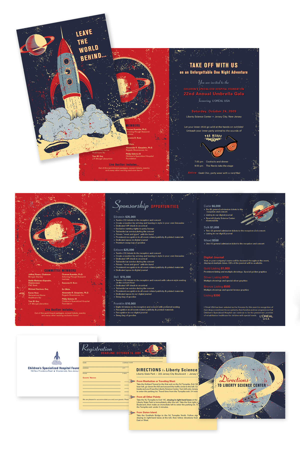 Children’s Specialized Hospital 22nd annual fund raising gala was held at the Liberty Science Center featuring the band the “Nerds”. Our challenge was to design an invitation that would create excitement and attendance for sponsors and donors. We created a look that was both retro and scientific which captured the fun and uniqueness of the event.