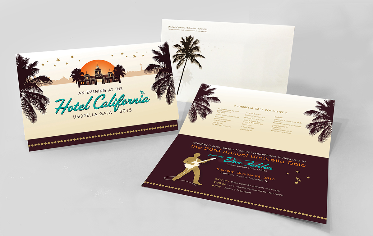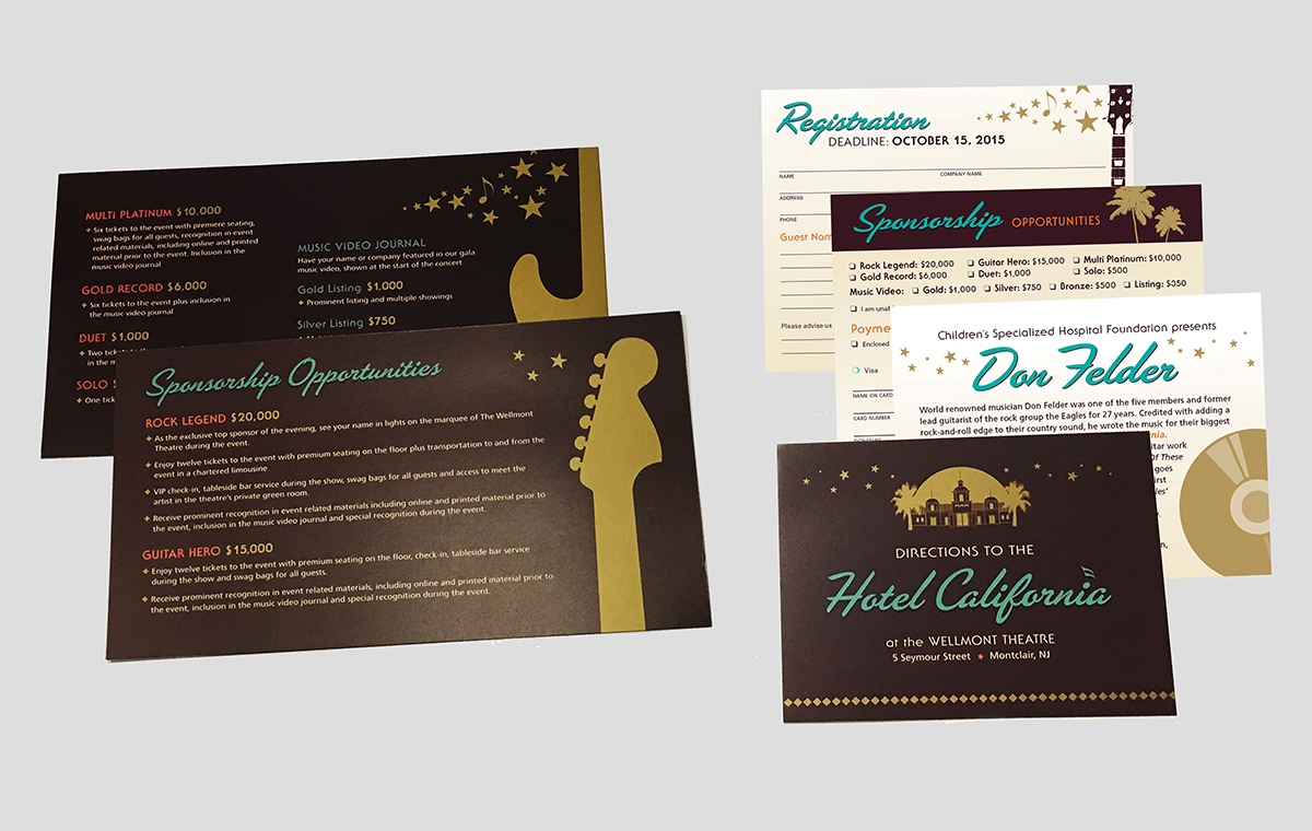 When Children’s Specialized Hospital held their annual fundraising gala at Wellmont Theatre, LA Design helped crank up the excitement...and the donations. Branding the event “Hotel California,” we executed a range of electrifying tactics from invitations, to event posters, to a powerfully moving video. Capped off by a live performance by Don Felder, world renowned musician and former lead guitarist of rock group The Eagles. It was truly an unforgettable night.