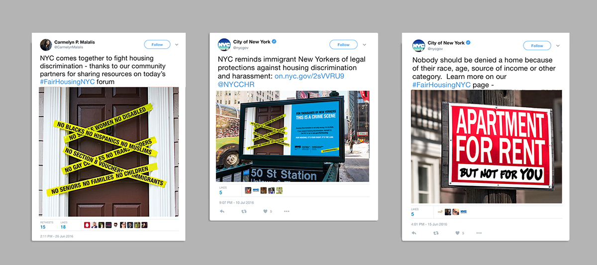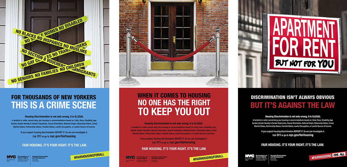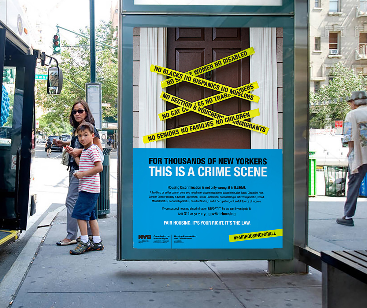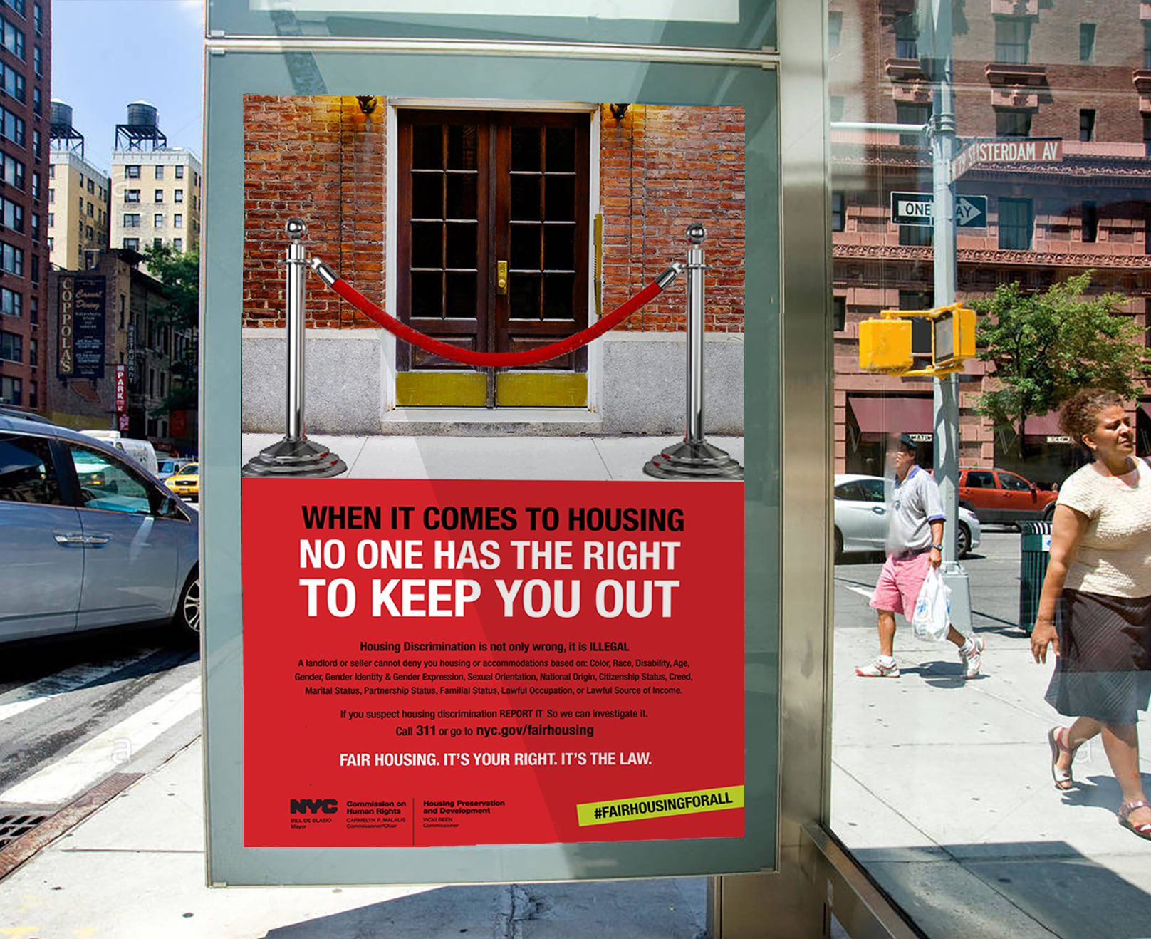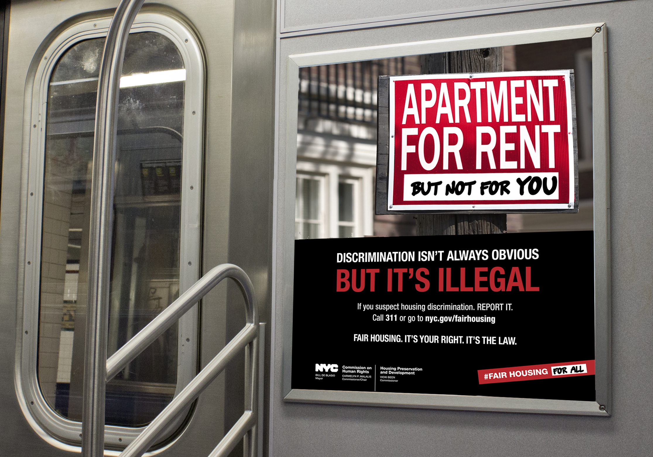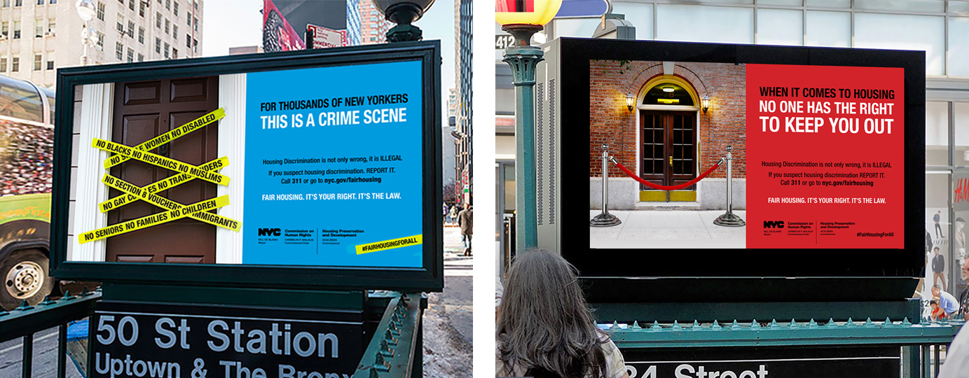 The NYC Commission on Human Rights (NYCCHR) is charged with protecting and providing fair housing in the City of New York. The agency collaborated on a campaign with LA Design to inform New Yorkers about their Fair Housing rights and responsibilities under the Human Rights Law. We crafted a compelling campaign including street and subway advertising, digital marketing and social media, that educated and empowered tenants who faced discrimination to contact the NYCCHR. The campaign reached millions and earned recognition in multiple media outlets.