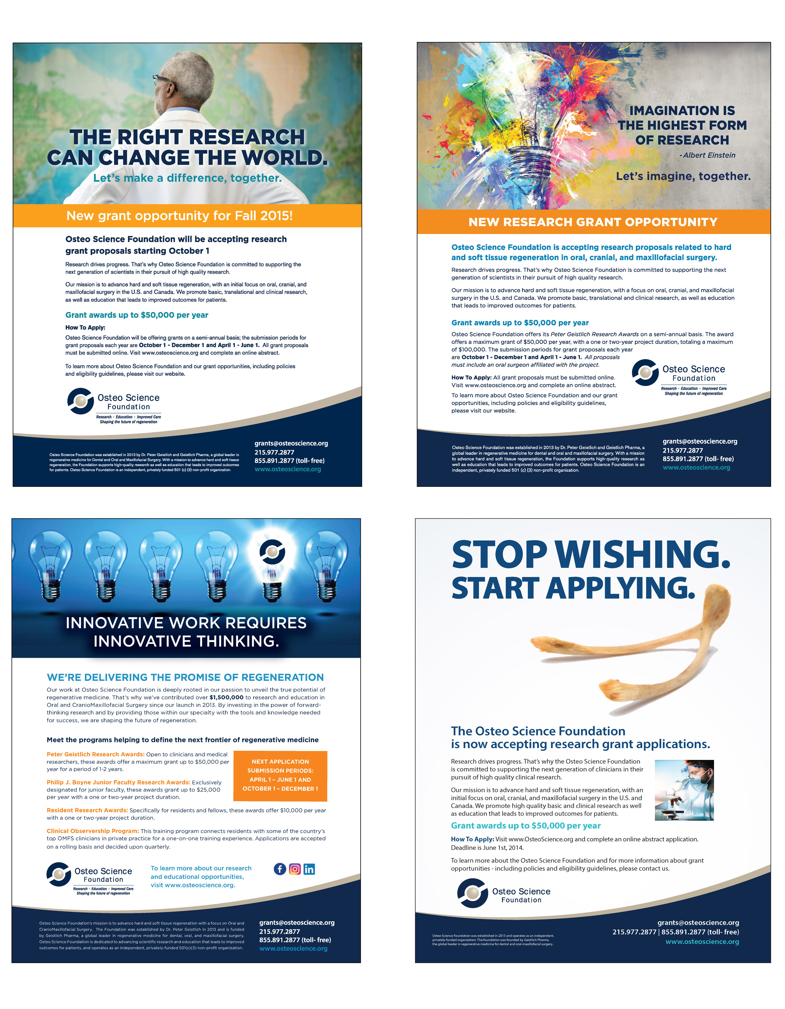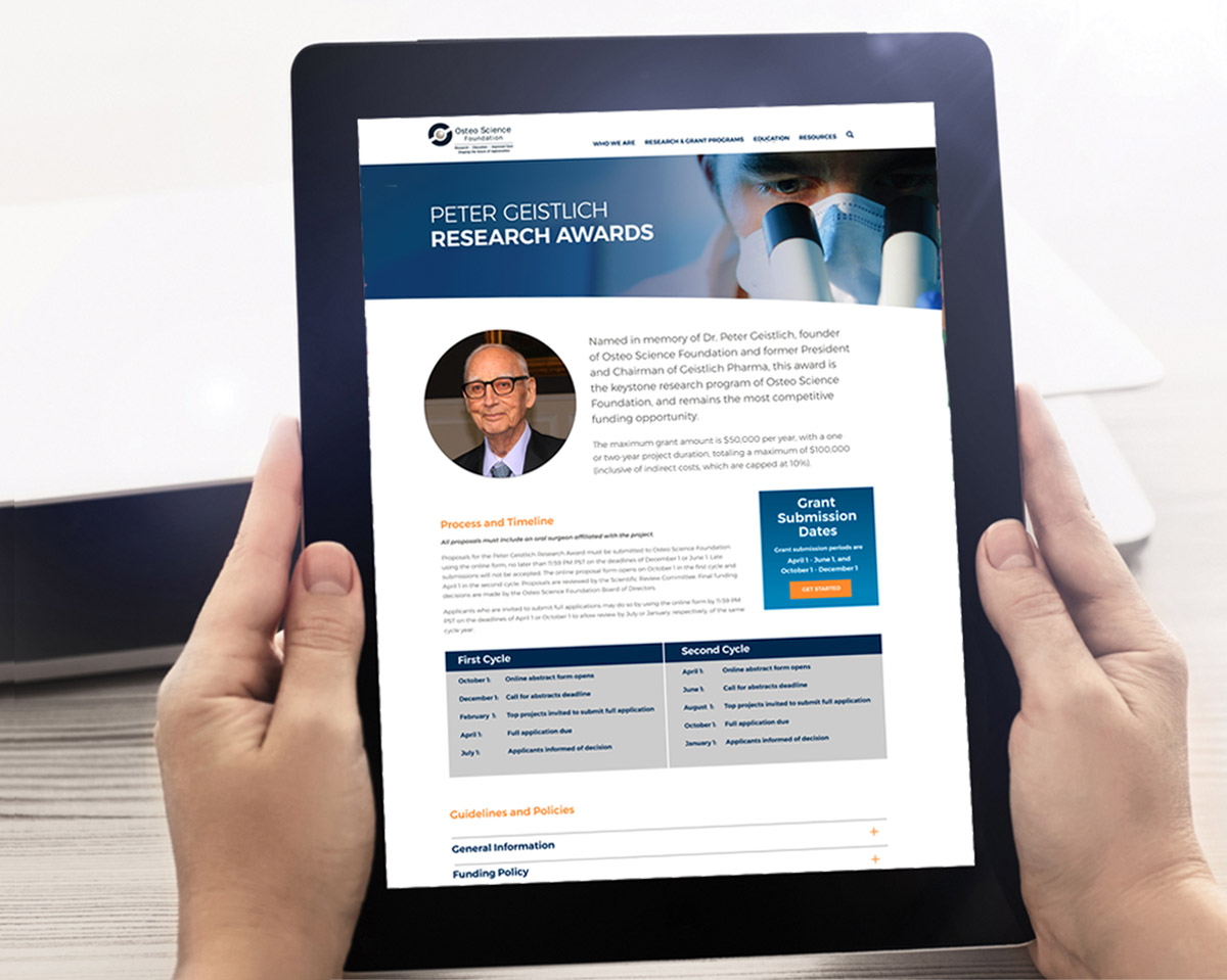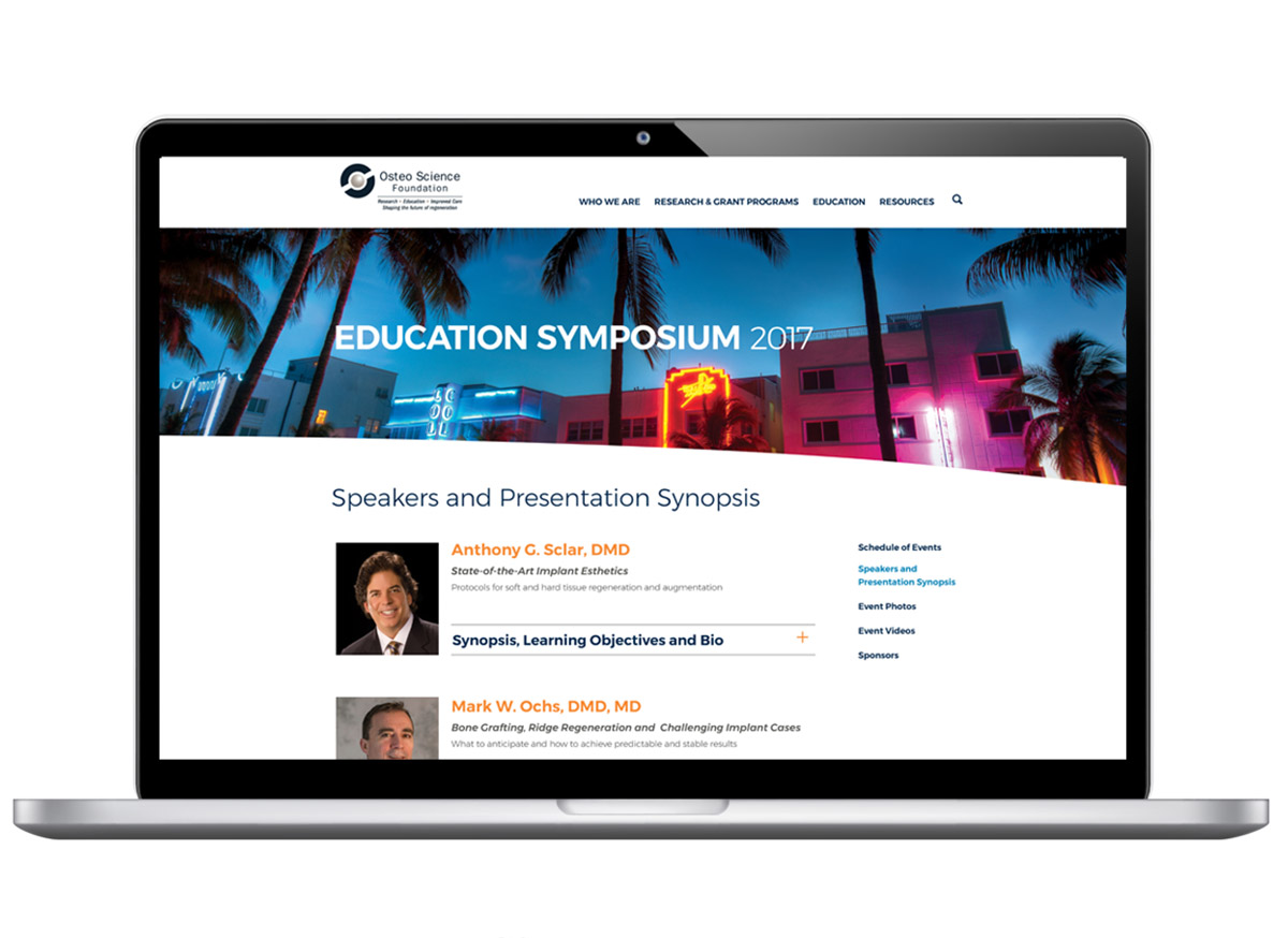 The Osteo Science Foundation provides a platform for scientific studies and an exchange of ideas in regenerative medicine. The Foundation will support the next generation of clinicians and will bring together clinical research with industry leaders in Oral, Cranial and Maxillofacial Surgery. As a result of our work together, OSF was able to officially launch the Osteo Science Foundation Website and branding materials to thousands of medical professionals in the industry. We developed a website to house a variety of content for users to engage with, including video, infographics, and white papers.