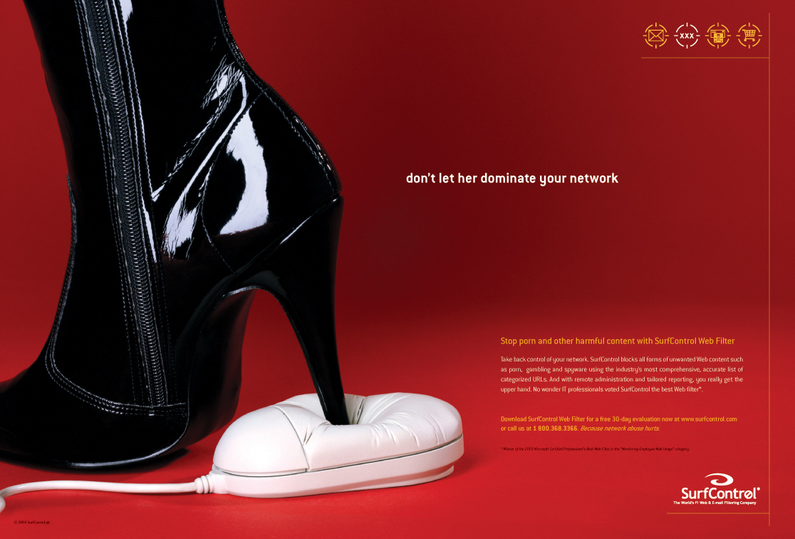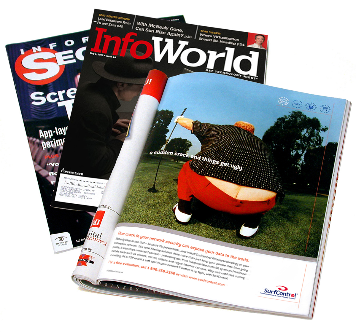 SurfControl is the world’s leading provider of web and e-mail filtering technology for businesses, protecting them from spam, viruses, worms and unwanted web content such as pornography. To launch their worldwide ad campaign, we created humorous ads with eye-catching visuals that speak to the concerns of IT managers. The campaign has earned numerous awards, including best print ad of the year from BtoB magazine for the “stop spam now” ad.